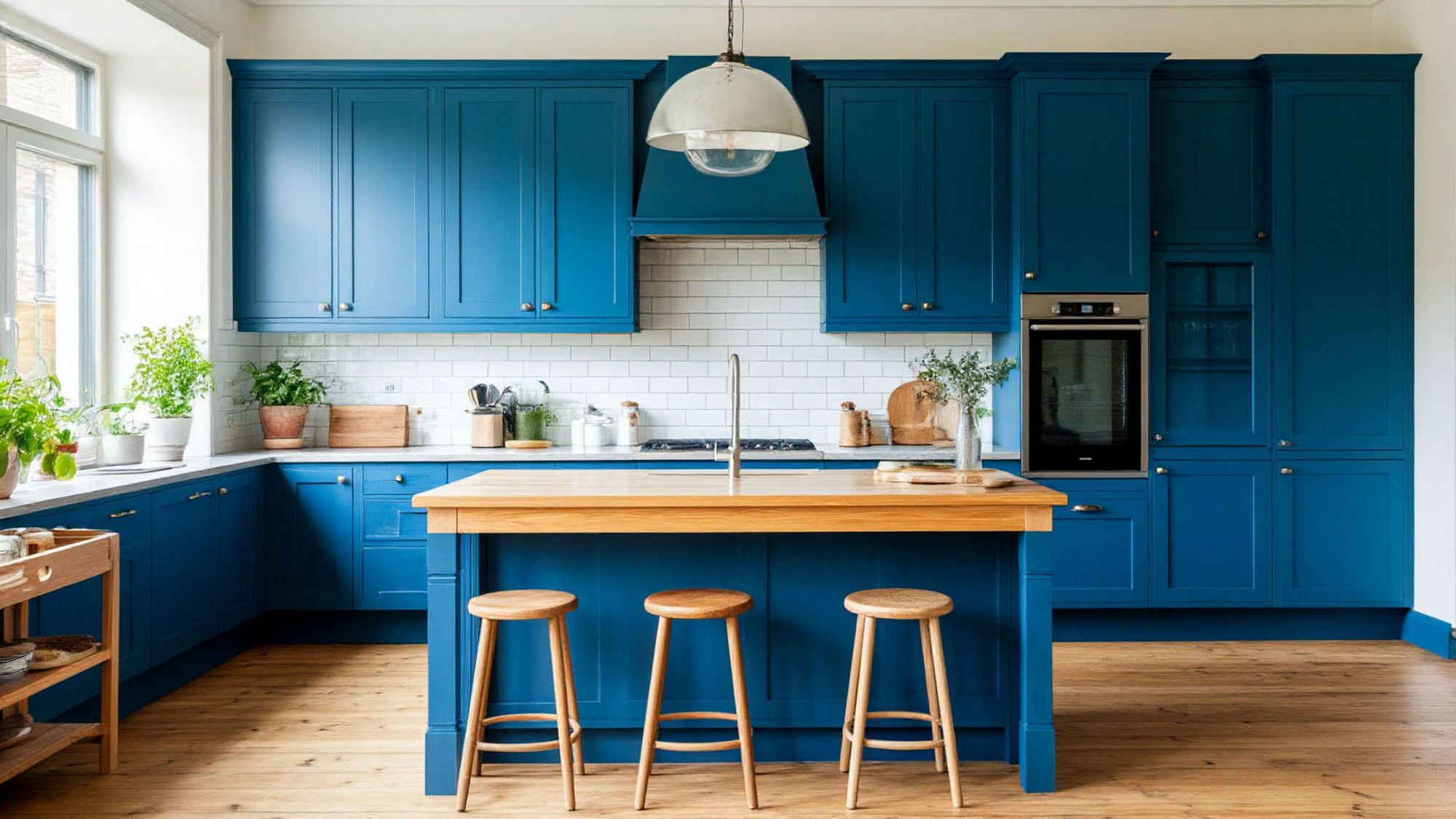 Главная идея “Нордлиса” — сочетание холодного северного оттенка и домашнего тепла. Синий здесь не строгий и не тёмный, он мягкий, обволакивающий, напоминающий акварельное небо над морем. Этот цвет идеально сочетается со светлым деревом — тепловатым дубом, ясенем, буком, которые добавляют ощущение уюта и природной мягкости. Светлое дерево словно оживляет глубину синего, создавая баланс между холодом и теплом. В результате рождается интерьер, в котором хочется проводить время, где синий не охлаждает, а успокаивает, как спокойная гладь северного озера.