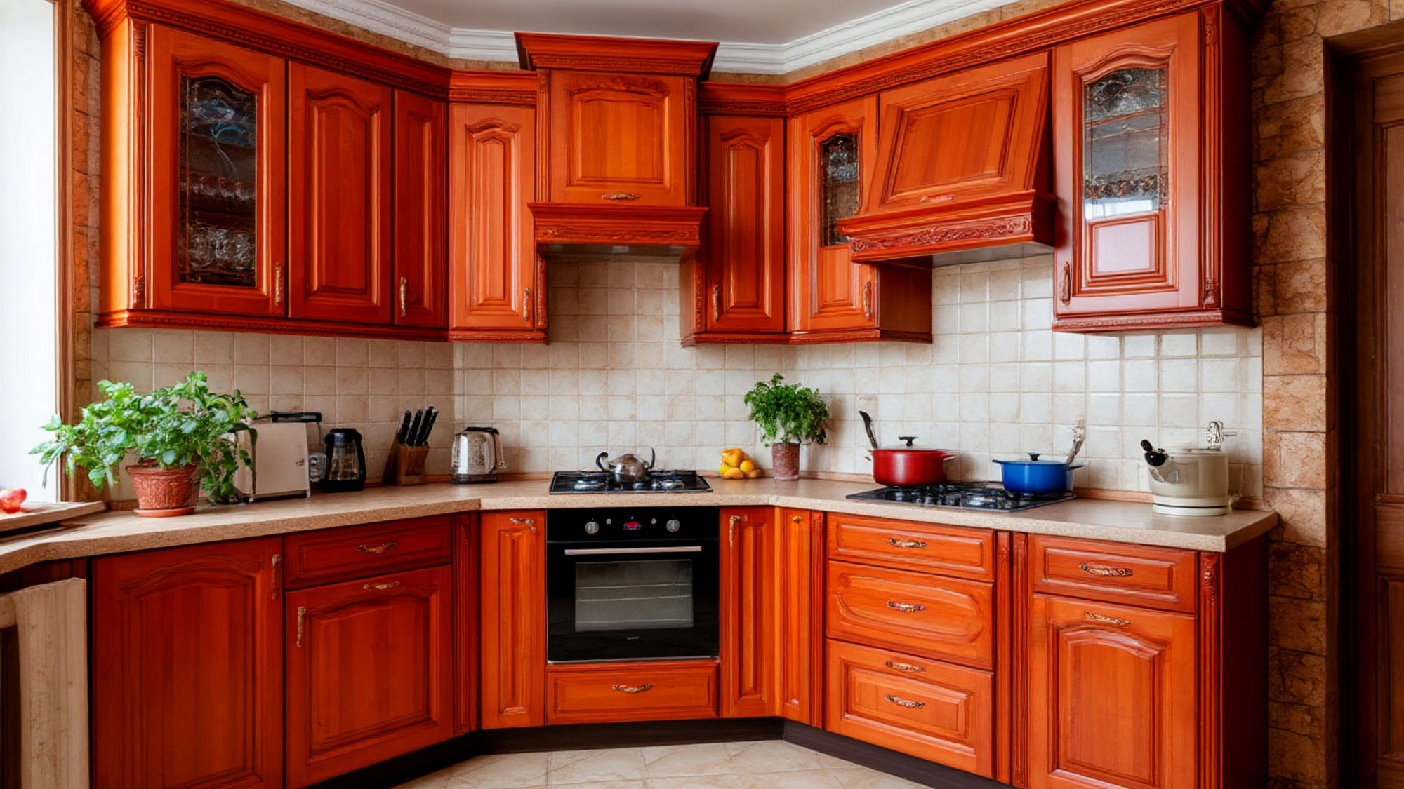 В "Ясенице" чувствуется уважение к ремеслу. Все линии точны, фурнитура изящна, но не кричаща — бронзовые ручки с лёгким старением добавляют благородства. Декор сдержан, без излишней пышности, ведь настоящая красота в простоте. В русском стиле всегда ценили естественность — и эта кухня следует тем же принципам. Здесь всё на своём месте: удобство, надёжность и душевная гармония.