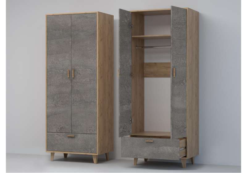 Шкафы Эго Шк-1 на ножках дуб крафт золотой / камень темный (80x51x201,9).