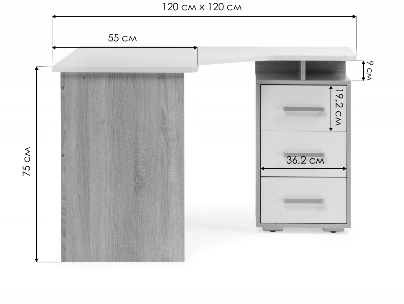 Компьютерный стол Лайт-2 120х120х75 см угловой дуб сонома / белый (120x75).