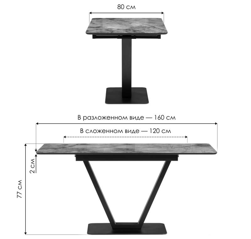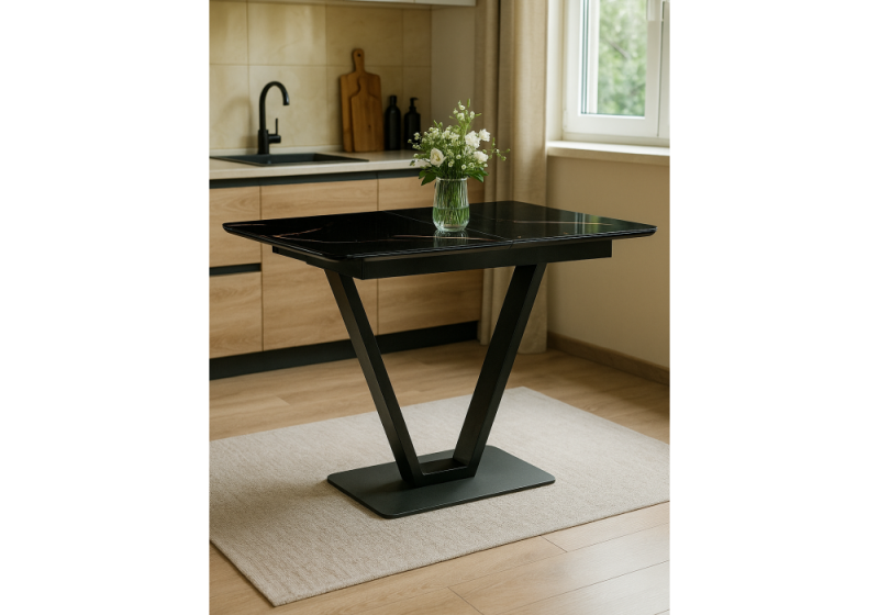 Стол стеклянный Бугун обсидиан / черный (80x77)